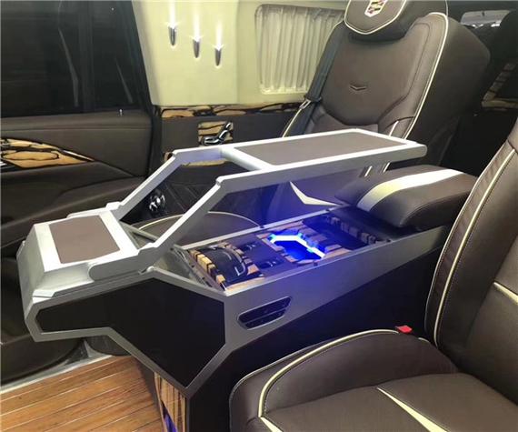 19款凯迪拉克总统一号整台车的地板选用高级柚木地板,俭朴稳重,最主要的是愈加的强健可靠。后备箱空间非常的富余,2019款凯迪拉克总统一号长达五米九的车身使得后备箱甚至可以放进一些小家电,后备箱一侧有躲藏储物空间,可以放置一些私人物品。