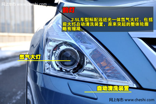 2.5L车型标配远近光一体氙气大灯,包括前大灯自动清洗装置。原来突起的整体轮廓略有缩减,雾灯看起来更加的追求精致感。