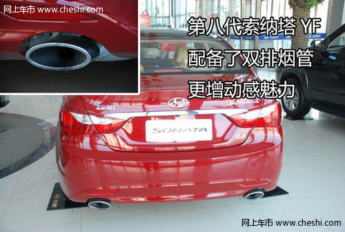 与备箱型为一体的尾翼设计、双出镀铬排气系统,将新索纳塔的运动气息表现得更为彻底,同时尾部在造型方面所使用的线条较为复杂,为后部提升了十足的时尚运动性,值得一提的是尾灯方面加入了紧急制动闪烁提醒系统,起到了警示后车的安全作用。