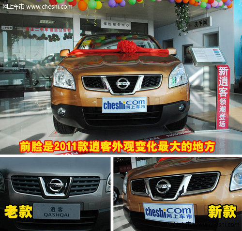 作为一款年度改款车型,2011款逍客在外观上没有大的变化,最明显的部分是前脸中网,新款逍客的中网镀铬面积加大,更换了更具现代感的镀铬蜂窝中网,新的前脸更具有家族特点,特别是日产奇旗下的SUV车型,都采用了类似的格栅。