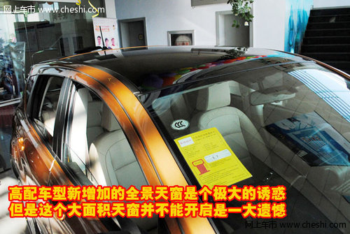 外观上的另一处明显变化就是大面积的全景天窗, 大尺寸全景天窗的加入使2011款逍客提气了不少,同时对提升车内光线与档次感起到了至关的作用。但遗憾的是这块大面积的天窗并不能开启,不具有通风功能,所以跟一般的电动天窗相比各有利弊。
