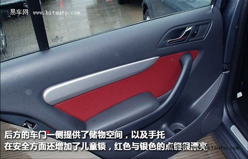 前面说了中控以及驾驶区域的改变,接下来要说的就是内部空间的一些变化。最直观的改变就是来自座椅的变化,虽然整个座椅的风格仍然不强调包裹性,以舒适性见长。但视觉上,因为使用了红色的皮质配色,因此塑造了很强的运动感。虽然左右没有提供电动调节,但依然提供了高度、腰托调节,实用性强。后排座椅方面,依旧是延续了黑色与红色的配色设计,朗逸提供给后排乘客一个更为舒适的乘坐空间,并且还附有一个后排中部烟缸与储物空间,两侧车门的储物格可以轻松放入饮料等大家物品,前排后部的储物夹层,放置报纸倒是不错的选择。