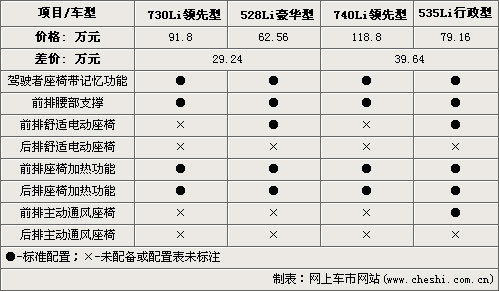 BMW在旗下新7系和新5系等高端车型上普遍搭载了一系列的前瞻性科技配置,在安全性、科技性、豪华性上大为提升。但是通过对比您会发现一些高端配置的出现仅仅局限于车系的最高端车型当中,也就是最贵的车型上。例如上面图表中,您可以看到售价不到80万元的535Li轿车搭载了几乎全部顶级配置,而售价在118.8万元的740Li轿车在这些配置的体现上也不是“标准配置”这意味着车主想要得到这些配置时需要额外的费用。