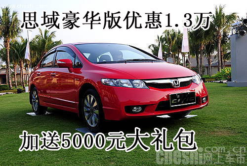 思域作为一款时尚的紧凑型轿车设计比较个性另类,考虑到迅捷的加速和硬朗的悬挂,思域比较适合个性的年轻一族。但随着价格的降低以及口碑的传递,思域似乎已经被许多三口之家所接受。最近,网上车市了解到思域的豪华版现金优惠1.3万,另送5000元大礼包,有现车。有兴趣的朋友可以到4S店进一步了解下。具体车型优惠如下表所示:
