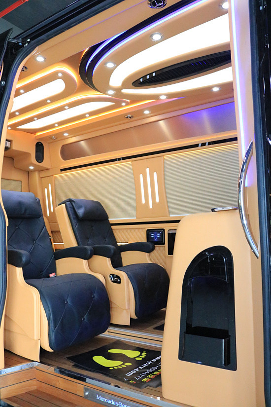 18款奔驰斯宾特房车多功能精美的吧台,大容量的恒温电加热水壶,酒柜和水晶酒杯,DVD及美国尖端bose音响,超大屏的40寸液晶电视。18款奔驰斯宾特米黄色的内饰衬托了高雅高贵的气氛,凹凸参差造型古拙浓艳,精美特别,看到如此美丽现象,身心天然愉悦豁然开朗。奔驰斯宾特房车乘客舱选用电动侧滑门快捷进入,轻轻拉下车门,电动缓缓翻开,彰显出车内舒适豪华的设备。奔驰斯宾特商务车独立按摩椅可完成前后、靠背、腿拖多角度电动调度,第三排座椅可180°完全躺平当床运用。18款奔驰斯宾特房车,既是总裁的移动单位、也是一家之主的户外卧室。
