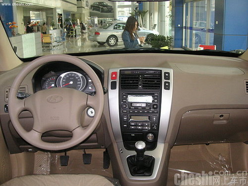 途胜采用了现代流行的浅色调内饰设计,金属质感的中控台不同于伊兰特、索纳塔的风格,简洁利落。中控台上有嵌入式6碟CD、FM/AM及卡带,自动恒温空调(空调是数字式的,现代原装途胜的空调是微调型的)等。自动恒温空调是数字式的,而现代原装途胜的空调是微调型的,这一点是个小改进,带同时空调带车内、外气温指示,相对比较对南方地区的用户更加实用。真皮方向盘,方向盘可两方向调节,可以根据自己的身高降方向盘调整到合适的位置。 全车共有7个扬声器,除前后门上前四后二六个外,在副驾驶座椅下方还设置了一个低音单元。