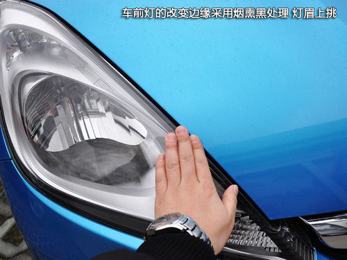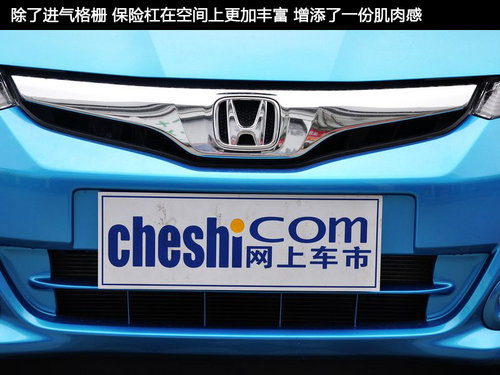 改款飞度前保险杠的设计与巴黎车展展出的混动版一致,通过线条的变化,改款飞度勾勒出一幅U型进气格栅的前脸设计来。雾灯则分布于U型格栅之外。同时,保险杠在空间上更加丰富,增添了一份肌肉感。新飞度前脸另外一处变化就是上部的进气格栅造型相比现款更宽,格栅与大灯内侧直接相连。