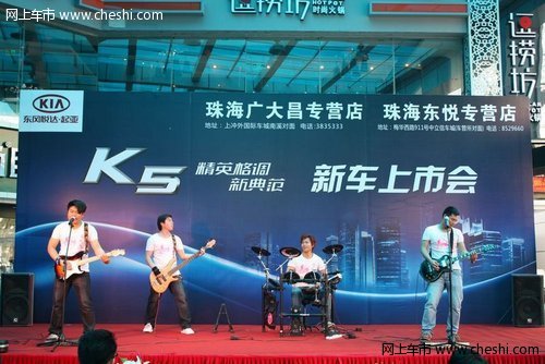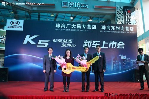网上车市珠海站讯:3月13日,东风悦达起亚全新中高级轿车K5在珠海地区辉耀上市。东风悦达起亚珠海东悦专营店、广大昌专营店及市内各主流媒体参加了上市发布会。K5共推出2.0L和2.4L两个排量7款车型,每款均有8种车身颜色可供选择,价格区间为15.98万-24.98万人民币。它的问世,将全面引领国内中高级车市格调新风尚!