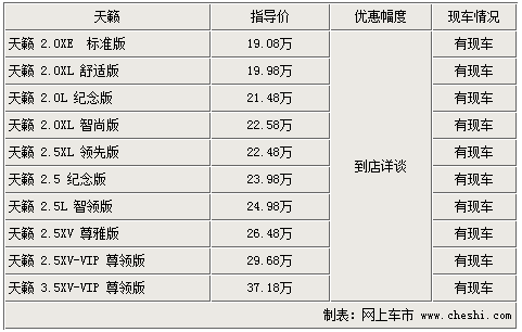 绍兴日产天籁优惠高达1万 欢迎试乘试驾