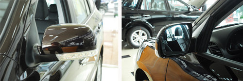 新胜达的后视镜非常的大,这样对后方车辆的判断还是很有优势的,可惜的是老款豪华版上的电动后视镜在二驱版上没有配备。