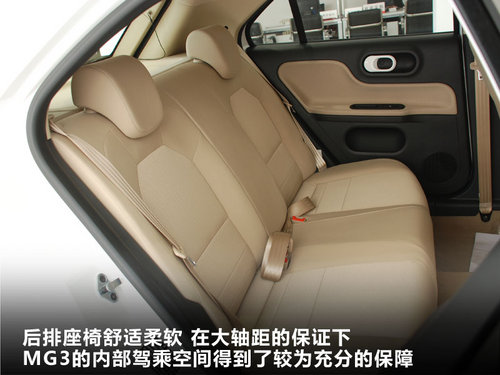 后排座椅舒适柔软,在大轴距的保证下,MG3的内部驾乘空间得到了充分的保障,不过当中间要坐人的情况下,地拱的设计必将舒适性打个折扣,后排座椅前方各自有储物袋,方便后排乘客放些文件之类的东西。