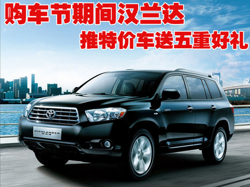 据丰田 Highlander汉兰达 4S店销售人员表示,购车节期间,汉兰达2.7纪念版车型一台,完美配置,超值价格;3.5纪念版车型一台,完美配置,超值价格!置换油礼,再享五重大礼。