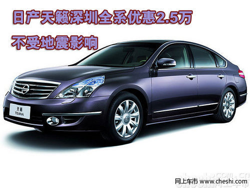 【网上车市】近日,网上车市编者从深圳地区经销商处获悉,虽然日本地震对日产日本本部的日产汽车生产影响较大,但国内的东风日产暂时没有太大影响,优惠价格依然稳定。现在购买天籁可直接优惠现金2.5万元较之前略有提升。感兴趣的朋友不妨关注一下。详情请咨询:0755-33002601.