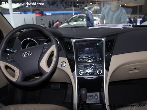 内饰方面,第八代索纳塔真正的亮点是新增的高科技配置,方向盘出人意料的增加了换挡拨片,增加了驾驶乐趣,并配有一键启动按钮,增加了车辆时尚奢华感,蓝牙电话,定速巡航,行车电脑应有尽有。仪表是最能体现科技感的地方之一,第八代索纳塔仪表盘采用黑底白字,蓝色背光,中央采用LCD材料的行车电脑显示屏,显示清晰,不仅整个仪表盘色彩丰富。中控台的GPS导航也是蓝光背景,采用触摸屏设计,囊括多媒体,空调,导航等信息。