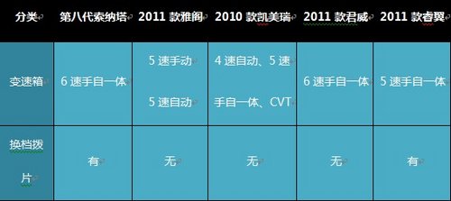 *国内中高级车市场代表车型变速箱、换档拨片配备一览