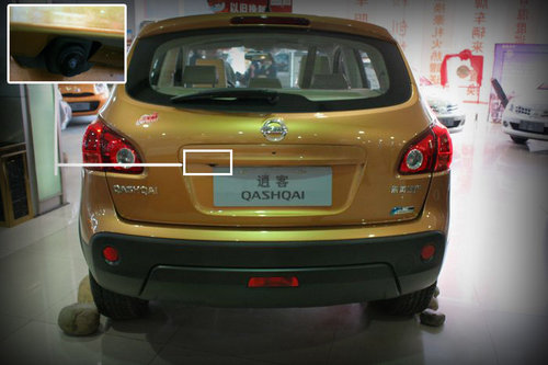 倒车全景影像系统,在英菲尼迪FX 才有的,出现在了我们拍摄的2011款逍客上,在品牌入门级SUV中增添这个功能算是科技的平民化吗?这样一来从营销策略上来说日产车型更具有品牌特色; 倒车就像玩游戏一样的确很有意思,该系统通过分布在前进气格栅、反光镜下以及后牌照架上的摄像头进行实时景象的捕捉,最后经过软件合成显示在屏幕上,使驾 驶者在车内就可以得知车辆四周的一切信息。