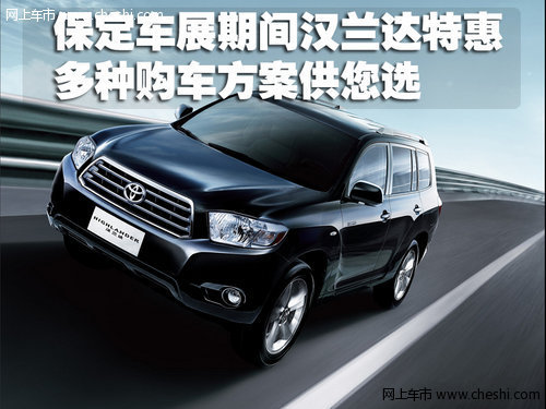 近日根据编辑了解,军校广场车房联展于本月15-17日进行,目前广汽丰田岁丰朝阳店汉兰达“自由购”活动正在同时进行中?;疃诩?,现车供应,还有多种购车方案供您选择:◆ 丰田金融汉兰达专享购车方案◆ 我型我秀改装方案◆ 汉兰达专享置换优惠。此外,活动期间购车还可获赠全年燕赵都市报一份(限保定市区)。具体车型报价见下表: