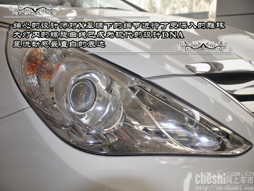 鹰眼式前大灯内部同样运用了许多线条进行装点,HID高亮度氙气大灯的配备让其炯炯有神。
