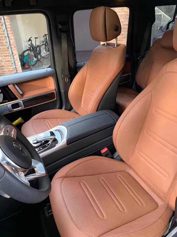 19款奔驰G500内饰豪华气派,卓越的品质和精致的工艺在车内体现得淋漓尽致,对细节的精益求精是内饰设计中的重要原则。车内采用深色调与桃木装饰,黑色真皮运动座椅非常舒适,方向盘以高档真皮包裹装饰,触感极其细腻。配有桃木装饰的操控台,稳重大气,同时提高了整体的质感。各种功能按钮应有尽有,丝毫不次于豪华轿车的功能。 内饰焕然一新,虽然还是以平直的线条为主,但完全没 了上一代车型那种粗糙的感觉了,用料和做工都能令人满意。跟奔驰的很多其他车型一样,它也用上了双12.3英寸屏幕,科技感很强。19款奔驰G500经过全新改款中控大屏和仪表部分也采用了科技感满满的双12.3寸巨幕,空调出风口也改为重新设计的炮筒式,豪华感和科技感大大提升