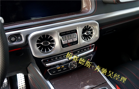全新G63内饰方面,新G63保留了新G500的整体设计,除配色差异外,新车还换装了全新造型的平底式AMG运动方向盘,其两侧配以打孔皮质包裹,下部镀铬装饰的造型也与新G 500明显不同,看上去十分战斗。此外,全液晶仪表盘+中控大屏的双12.3英寸屏幕设计在新车上也没有缺席,营造出了浓郁的科技感。