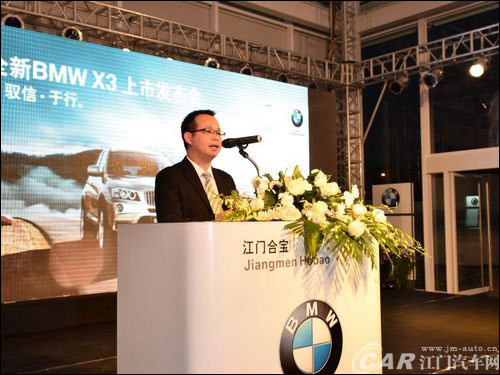 正如江门合宝总经理廖培周先生在发布仪式的开场词中所讲的:今晚,我们不光是庆祝一款完美车型的上市,更是为一种伟大的信念而欢呼,那就是:因为信赖,所以超越!古今中外,人类所有的进步都是一种超越,而超越的动力源于自我的意念、勇气和信心,也源于他人的激励与信赖。全新BMW X3就是这样一个动人的例子,谢谢各位朋友对BMW X3的信赖,也感谢各位对江门合宝一如既往的信赖与支持。