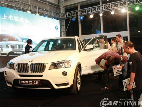 网上车市江门站讯:2010年10月,全新BMW X3巴黎车展首次亮相,揭开了全新X3全球上市的序幕,2011年3月23日,宝马中国正式宣布全新X3正式登录中国大陆市场,2011年4月23日,全新X3在江门合宝店荣耀上市。此次上市车型有xDrive35i豪华型70.9万元,xDrive28i豪华型59.6万元、xDrive28i领先型54.5万元3个车型均为3.0排量,现江门合宝已全面接受预定。