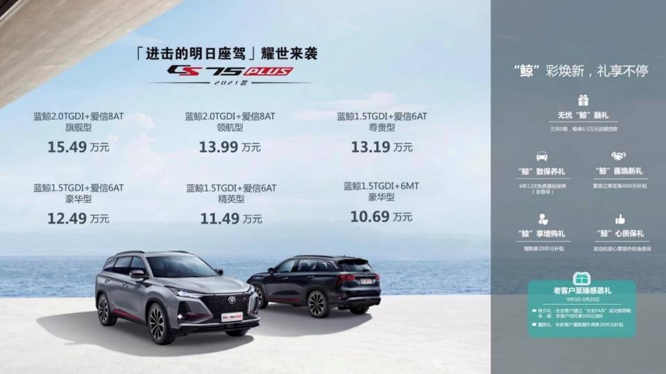 2021款长安CS75PLUS车型已在9月5日圆满落幕,车型竞争力更上一级台阶,将带给用户更舒适、更优质的驾乘体验,进击的明日座驾,2021款CS75PLUS市场表现值得期待。