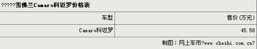 2011年4月19日 深受中国年轻人喜爱的《变形金刚》中的“大黄蜂”--“传奇性能跑车”雪佛兰Camaro科迈罗在上海国际车展正式登陆中国,而上海通用汽车将以全进口方式引入雪佛兰科迈罗第五代产品,排量为3.6L,售价45.58万元,有蜂黄、天梭银、星条红、钨金黑、布鲁斯蓝五种炫酷车身颜色供选择。