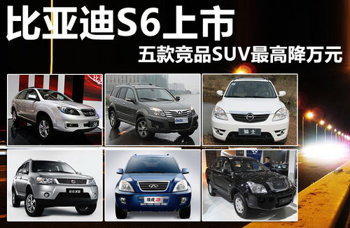 从上表可以看出,针对比亚迪全新SUV车型S6的正式推出,主力自主品牌SUV车型出现了不同程度的大幅降价,长城哈弗H3车型优惠幅度已达一万元,而陆风X8、奇瑞瑞虎3、威麟X5和海马骑士也分别有从4500-8000元不等的大幅降价活动。S6的上市,无疑是对自主品牌SUV市场的又一冲击。