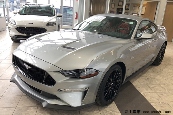 新车外观采用银色涂装,前脸采用“马丁脸”设计,配备经过熏黑处理的蜂网式进气格栅,两则搭配造型狭长的氙气大灯,前保险杠造型激进,两则留有三角形进气通道。同时,新车引擎盖上布置有矩形散热孔,前叶子板处贴有5.0徽章,彰显出该车强大的动力性能。
