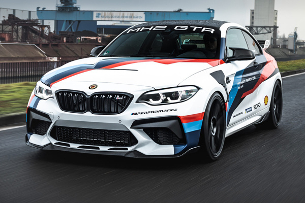 MH2 GTR车型前脸配备了宝马家族经典的双肾进气格栅,保险杠下方配备了炭黑前铲。车身侧面配备黑色锻造轮毂,表面为亚光黑,前轮尺寸为20×9,后轮尺寸为20×10.5(255)/30和295/25米其林Pilot Sport Cup 2轮胎。同时车尾安装新的碳纤维分离器,以及较为醒目的碳纤维大尺寸尾翼。