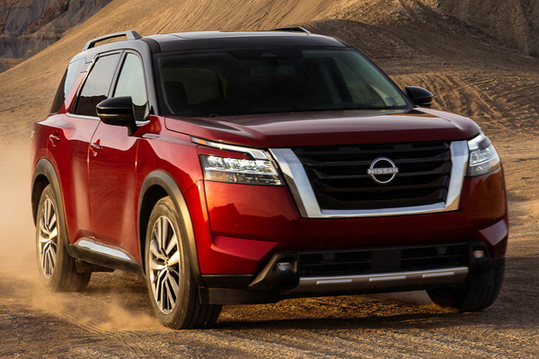 日产全新Pathfinder前脸配备了经典的家族式V字形进气格栅,两侧还装配了分体式头灯组,整体造型设计与日产旗下全新途乐、奇骏等车型保持高度相似。车身侧面配备多辐式铝合金轮毂,并采用了双色车身设计,车顶部还加装了金属行李架。车尾为隐藏式排气布局,灯组整体设计也更为狭长。此外,新车长宽高分别为5004×1979×1778mm,轴距为2901mm,其车身宽度以及高度均超越了大众途昂车型。