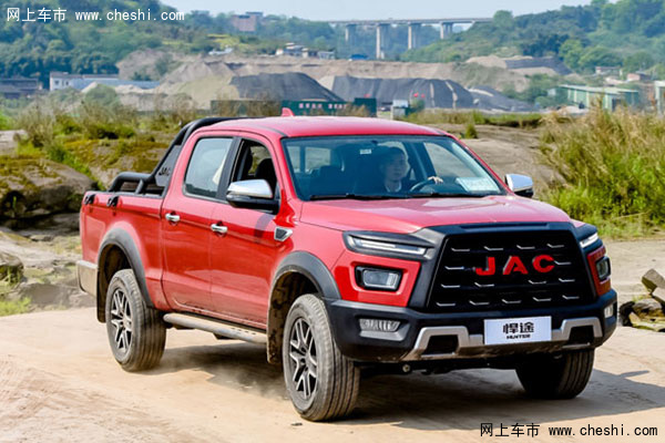 江淮悍途是江淮汽车顺应中国皮卡行业高端化、智能化、乘用化变革趋势而生的产物,全面迎合消费者日益增长的消费及生活方式需求。新车使用了全新宽体架构技术平台研发,车身尺寸为5320(5610)×1965×1920mm,货箱尺寸为1520(1810)×1520×470mm,轴距为3100/3400mm,采用了全新牛头造型前脸设计,造型更加炫酷,极具品牌辨识度。使用了变截面叠焊梯形车架和全地形越野轮胎,接近角30°/离去角23°/纵向通过角26°,最小离地间隙超230mm,因此江淮悍途在北京车展亮相之时,不少车迷朋友就给其冠以“中国公羊”的美称,直观描述了江淮悍途外观设计的张力和动感。