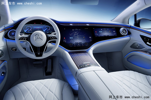 从此次曝光的内饰官图来看,全新EQS有两种内饰选择,一种是近似于全新S级的内饰双屏幕设计,另一种则是Hyperscreen。据了解,Hyperscreen将传统的中控台和仪表融入三块OLED屏幕并完全集成整合在一块曲面玻璃下方,尝试打造更融为一体、没有边界的视觉效果。并且全新EQS在硬件操作上还加入了中控屏幕控制区域的触感反馈系统,提升了驾驶员盲操的使用体验。此外,奔驰还为全新系统配置了智能AI,能够基于用户的使用习惯来实时预测所需功能。