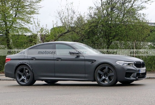 从曝光的谍照来看,新车采用了现款M5的造型设计,新车前脸配备了标志性的双肾型进气格栅,搭配车头两侧造型凌厉的头灯,视觉效果极具冲击力。但在细节方面有所不同,比如车辆后轮眉部分有加宽的护板,而且轮距与轮胎宽度也与现款车型不同。