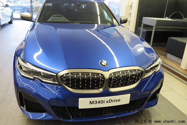 实拍新车外观采用亮眼的蓝色涂装,配备边缘位置带有银色装饰条的双肾进气格栅,格栅内部的网格设计比普通版车型更具运动气息。新车侧面配备了19寸双五辐银色轮毂,搭配红色刹车卡钳和超低扁平比轮胎。车尾造型与普通版区别不大,LOGO右侧的“M340i”标识彰显其强大的动力性能。