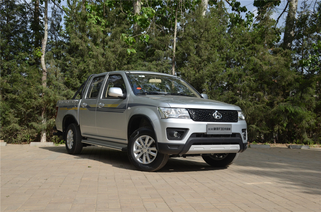 长安神骐F30维持了老版车型的设计风格,增加了车身彩条,提升了车辆的时尚感,增加了原厂后保险杠及龙门架,同时全新升级的205mm宽轮胎,让行驶更稳也更安全。此外,新车还增加了仿真皮座椅、侧脚踏板、“货箱宝”等配置,进一步增强了整车安全性和使用耐久性,并且配备了电动空调、电动车窗、中控锁、ABS等配置,最大程度的满足不同消费者的用车需求。
