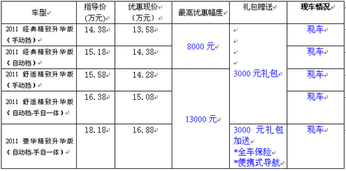 编辑目前从东风本田汽车实田4S店了解到,东风本田思域精致升华纪念版全系车型目前优惠最高1.3万的现金优惠,同时购买精致升华纪念豪华版VTI AT 车型的客户还可附加赠送全车险及便携式导航,目前店内现车充足,详情见下表: