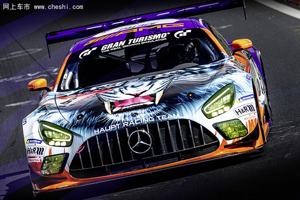 据悉,奔驰AMG GT3赛车全新涂装的灵感来自耐力赛紧张的场面、声音和激情,新涂装最显眼之处就在于引擎盖上有一只巨大的剑齿虎形象,两侧饰有经过修改的AMG徽章,以代表他们共同的野性。配色方案中的橙色与紫色、黑色和白色相结合,让人联想到老虎的皮毛,以及其在草原栖息地的日落。