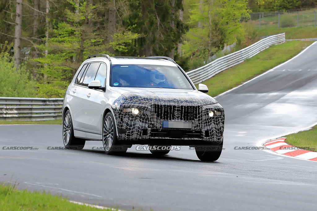 日前,有外媒拍摄到了一组新款宝马X7在纽博格林北环赛道的测试谍照,新车的伪装区域主要集中在前脸和车尾,预计这也是新车变化最大的地方。此前曾有外媒曝出过一组新款宝马X7的渲染图,分体式大灯组搭配大尺寸中网的设计引起了不小的争议,这种浮夸的设计放在这款全尺寸SUV当中确实有些奇怪。而有消息称,新车将在今年秋季正式发布,届时我们就能一睹它的芳容了。