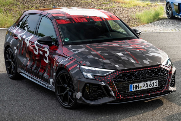 近日海外媒体曝光了一组奥迪全新RS3低伪实车图片,新车预计最快将于今年年底正式亮相,并计划在2022年内率先登陆美国市场开售,且有望在同年内引入国内市场销售。据悉,新车动力将搭载一台2.5T涡轮增压发动机,最大功率可达294kW,峰值扭矩480N·m,传动系统匹配7速双离合变速箱,并配备quattro全轮驱动系统。