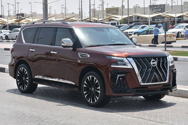 日产新款途乐前脸升级一体式大尺寸V字形进气格栅,周围加装了粗壮的镀铬饰条进行点缀,两侧还提供了全新分体式LED头灯组。车身侧面配备了双色铝合金轮毂,顶部加装了有金属行李架,并提供了金属材质打造的行李架。车尾为隐藏式排气布局,下方还换装了全新造型的保险杠。