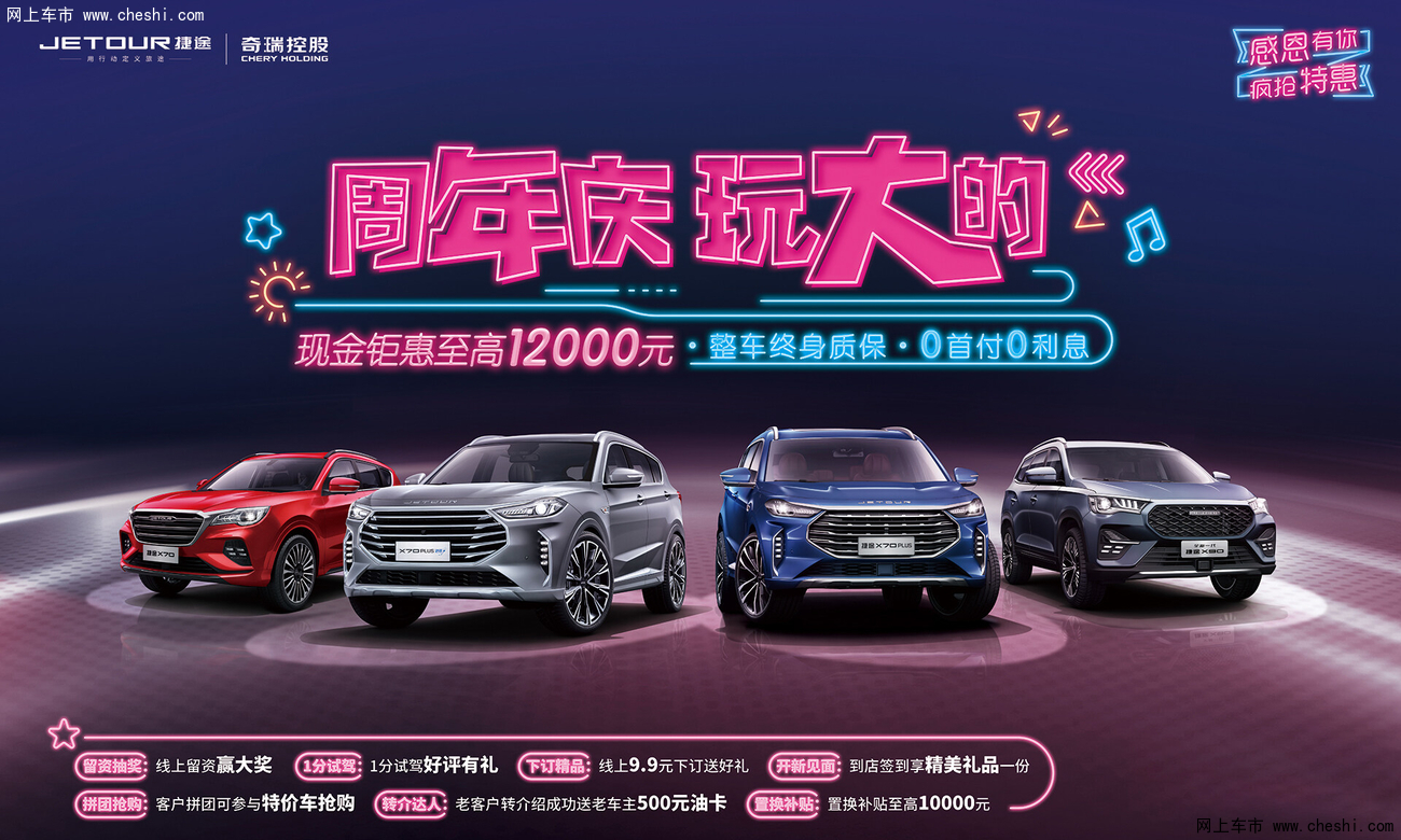 流火夏日,奇瑞捷途即将迎来三周年庆,为了回馈粉丝和用户的厚爱,奇瑞捷途联合40+新开业门店在内的全国经销商,开启购车超值福利大放送,线上线下豪礼送不停!