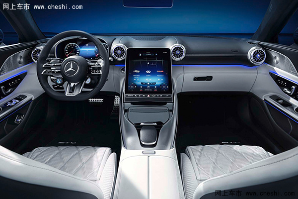 从曝光的内饰图中来看,全新SL内部采用跑车经典的2+2布局,并且内部使用了奔驰旗下最新的数字化内饰语言,新车装备有全液晶仪表以及一块全新S级“同款”的超大中控屏幕,许多实体按键集成在大屏内部,并且这块屏幕还可调节倾斜角度,科技感大大提升。新车还将搭载奔驰全新造型的多功能方向盘,并且新车的内饰上大面积采用了高级Nappa真皮进行包裹,座椅上还带有菱形纹路装饰,精致而又美观。
