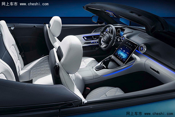 内饰方面,新车配备了12.3英寸的液晶仪表盘和11.9英寸的中控触摸屏,触摸屏下方配有物理按键,并且该屏幕还可以调整倾斜角度,科技感十足。新车还配有三辐式多功能方向盘和四个镀锌的“涡轮喷嘴”式空调抽风口,新车内饰采用大面积的高级Nappa真皮进行包裹,座椅上配有精致的菱形图案。奔驰还为消费者准备了大量可定制选项,包括运动内饰风格,AMG性能座椅,单色或双色 Nappa 皮革、带钻石的 Nappa 风格皮革缝线,或 Nappa 皮革与 DINAMICA RACE 超细纤维的组合,以及黄色或红色对比色明线等。
