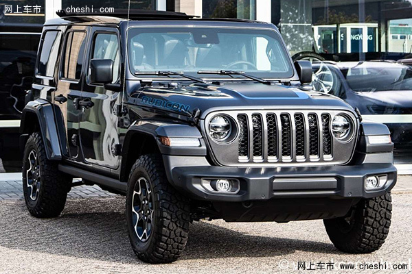 外观方面,牧马人4xe Rubicon仍然采用了家族式的设计语言,车身前脸配备了七孔式进气格栅以及经典的圆形大灯组,下方还配备有黑色塑料材质的前保险杠。从车身侧面来看,车身底盘超高,前翼子板位置配备了一个充电插槽。车尾部分配备了造型独特的尾灯,车尾左下角还带有4xe字样尾标,同时车尾部分还搭载了一个悬挂式备胎,整体来看,该车的造型十分硬派。