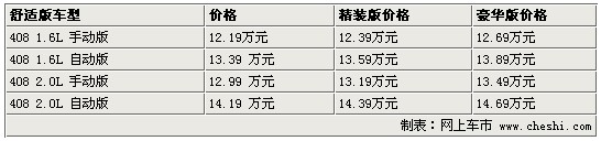 此次推出的标致408精装版、豪华版都是在舒适版的基础上增加了多种配置。配置升级,价格不变!