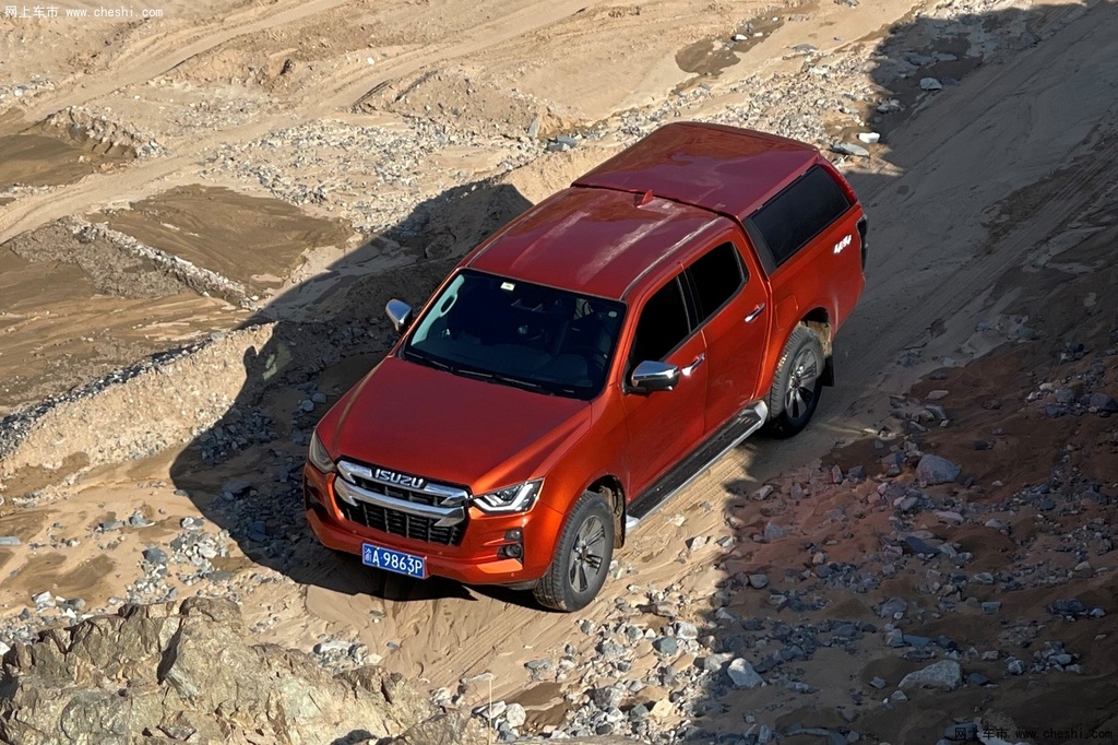 如此一来无论是面对沙化地面、干涸河床,还是土坡、碎石路都能肆意驰骋,底盘反馈给我的是堪称完美的可靠性与安全感。任凭路况如何差强人意、颠簸不堪,全新D-MAX依旧保持着出色的整体性,似乎眼前的戈壁依旧是坦途。除了不动如山的底盘结构外,韧性十足的悬挂结构同样值得称道。这套悬挂系统综合了舒适性、载重性与越野性能,吸收了车辆穿越戈壁路段时的绝大多数震感,没有因为坑洼路面的剧烈颠簸而产生任何质量问题,驾乘品质可谓相当出彩,我甚至一度以为自己并非在戈壁上驾车穿行。