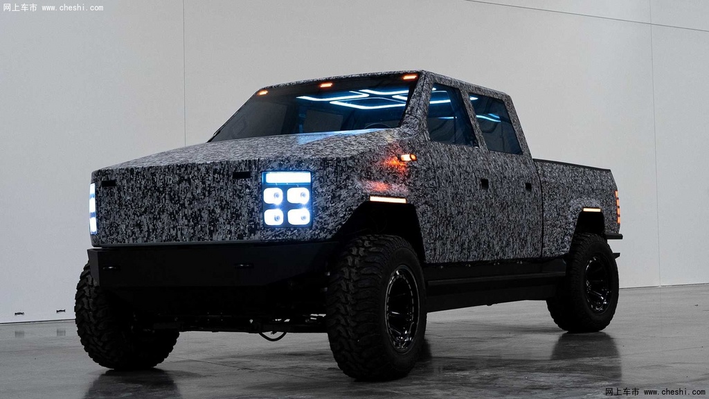 内饰方面,Atlis XT也在极力营造科技氛围,车顶四个巨大的矩形氛围灯发出的暗蓝色灯光颇具赛博朋克精髓。中控区域大面积采用防污、防刮和防撕裂材料打造,采用大尺寸液晶仪表与12.8英寸中控显示屏,如果消费者实在觉得内饰太过单调,也可以花费3000美元(约合人民币2万元)选装皮质座椅。除此之外,Atlis XT皮卡将提供三座和六座两种座椅布局,并配备主动式前照灯管理系统,能够在紧急状态下提供照明。