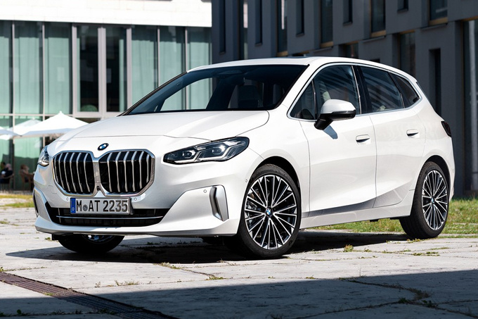 宝马全新2系多功能旅行车头部装配了7系同款大尺寸双肾进气格栅,两侧LED头灯组造型也得到了升级优化,整体造型也更为圆润。
